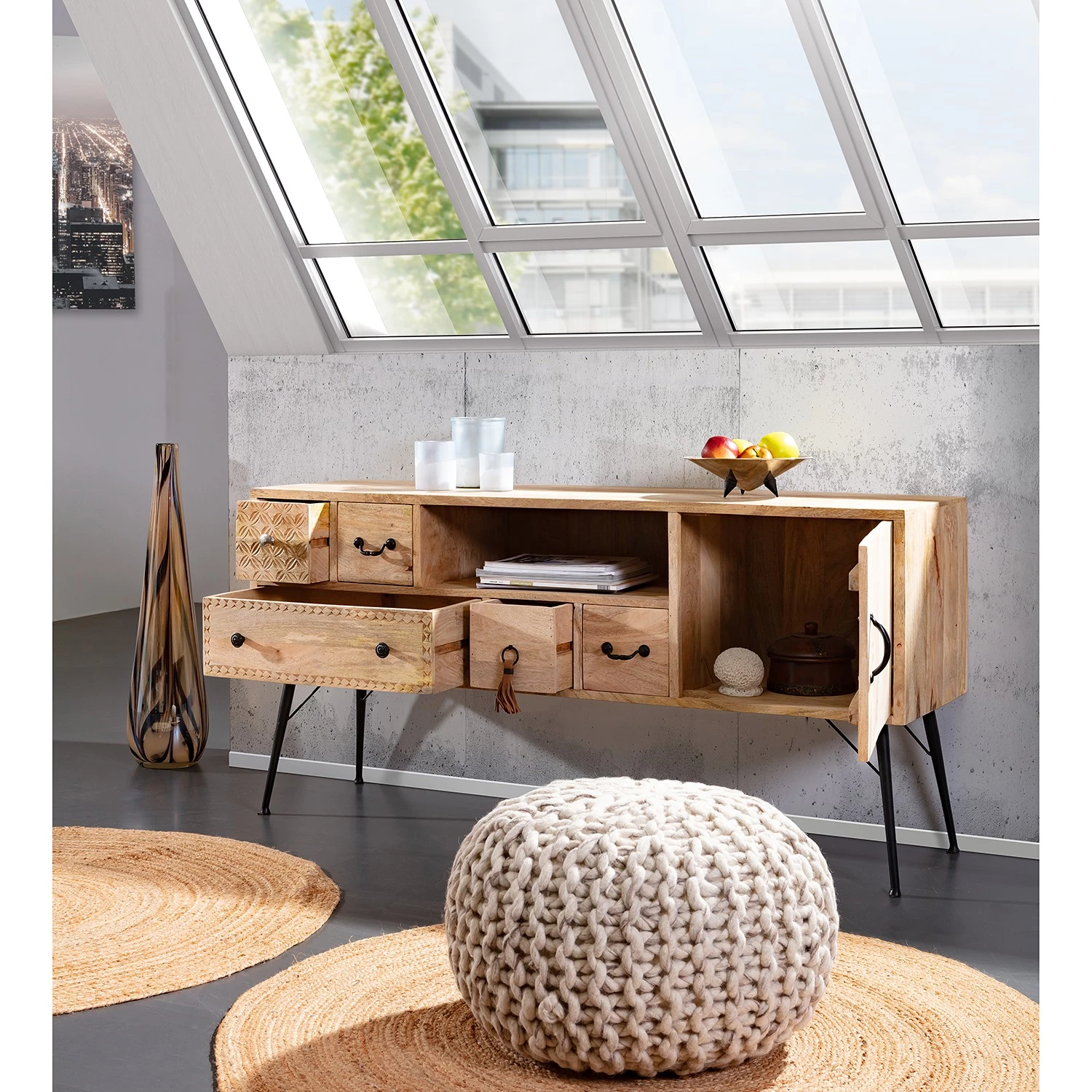 - Façade et corps : manguier massif teinté et verni